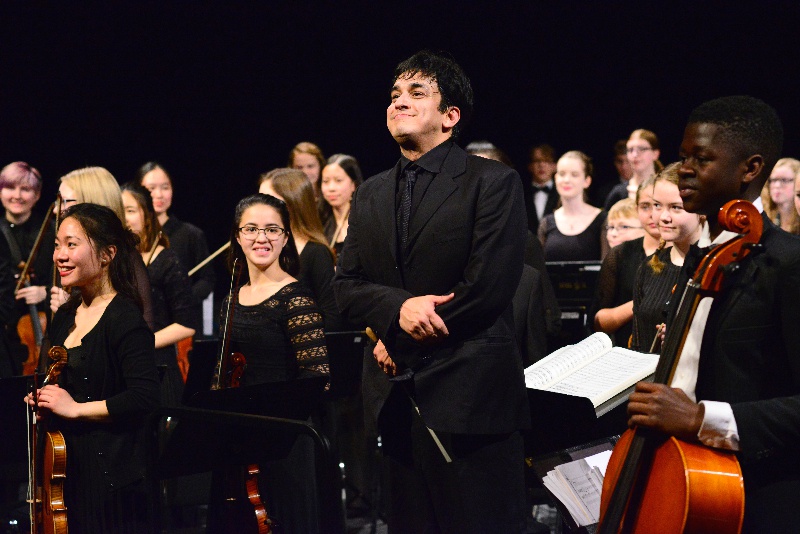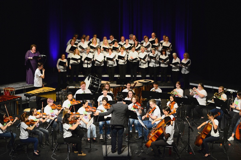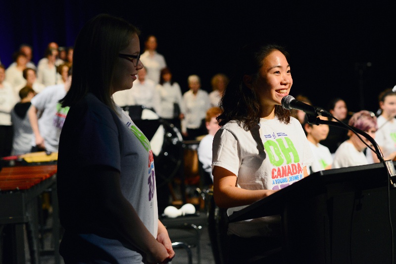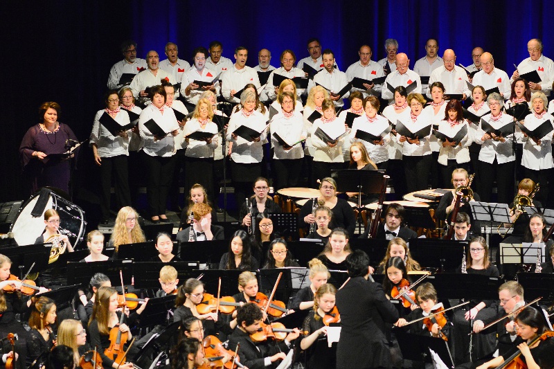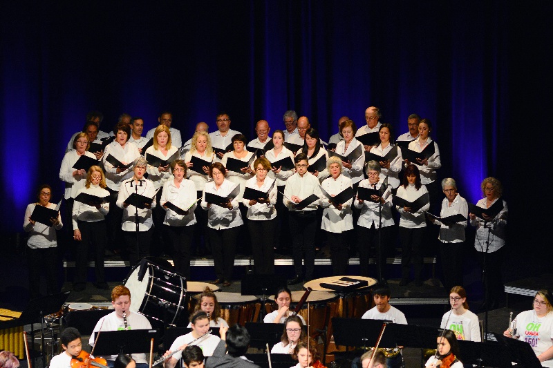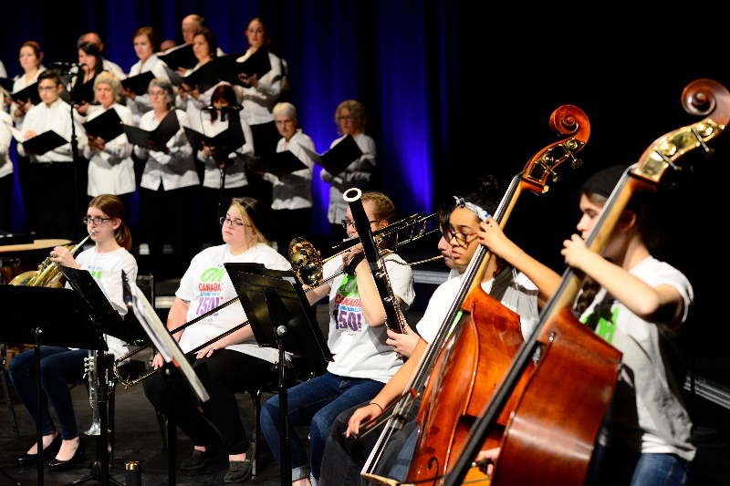 A big thank you to the Centre culturel de Caraquet in Caraquet, NB, for hosting two wonderful assemblies where students from école Marguerite-Bourgeoys, école Polyvalente Louis-Mailloux, and école Polyvalente W.-A.-Losier celebrated Canada 150 by sharing their art, stories and essays. Our NBYO orchestra members were proud to be joined on stage by soloist Suzanne Chiasson, our local C150 choir under the direction of Isabelle Thériault and guest speaker Herménégilde Chiasson. Commemorative plaques were presented to representatives of each school as a thank you for their participation in our special project.