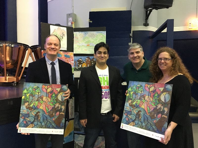 Thank you to the students of Bayside Middle School in Saint John for hosting a wonderful assembly. We were also pleased to have students from Rothesay High School and Harbourview High School sing in the Canada 150 choir. Heritage Canada Representative, David Burton was also on hand to bring greetings and enjoy the music and interviews with Bayside students about their Canada 150 artwork.
